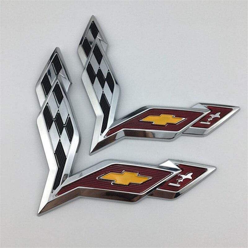 2 Pcs 3D Car Styling For Chevrolet Corvette Aveo Cruze Malibu Captiva Trax Niva Captiva Front Emblem Sticker Rear Trunk Badge Decal