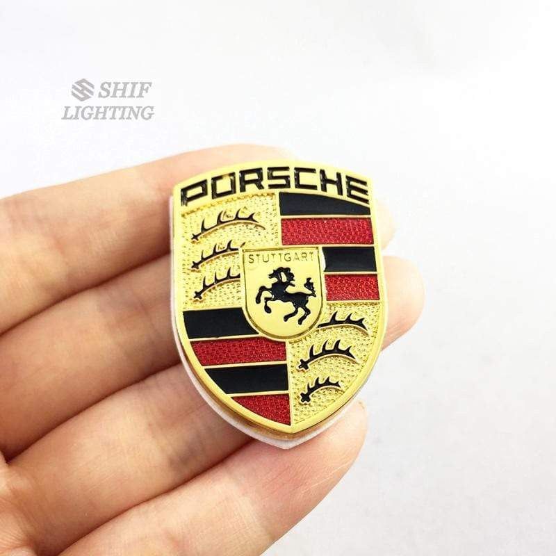 2 x Metal PORSCHE Horse Logo Car Auto Rear Trunk Lid Decorative Emblem Sticker Badge Decal For Porsche