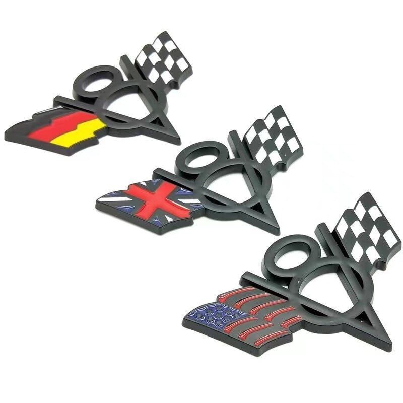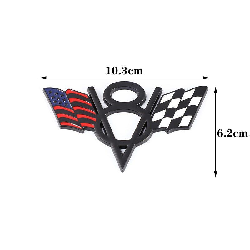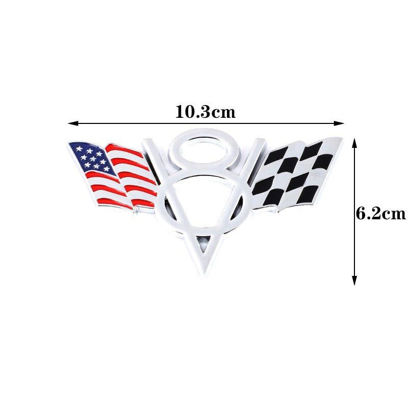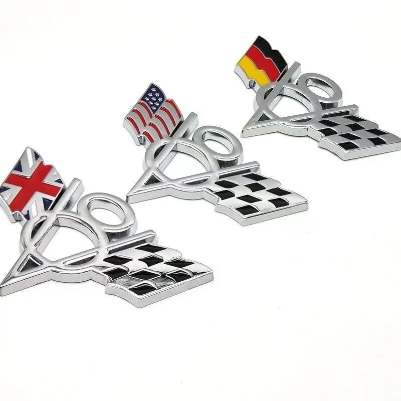 3D Metal V8 USA UK Germany France Italy Flag Sticker Emblem Badge for Fiat Ford Lada Audi Opel Skoda
