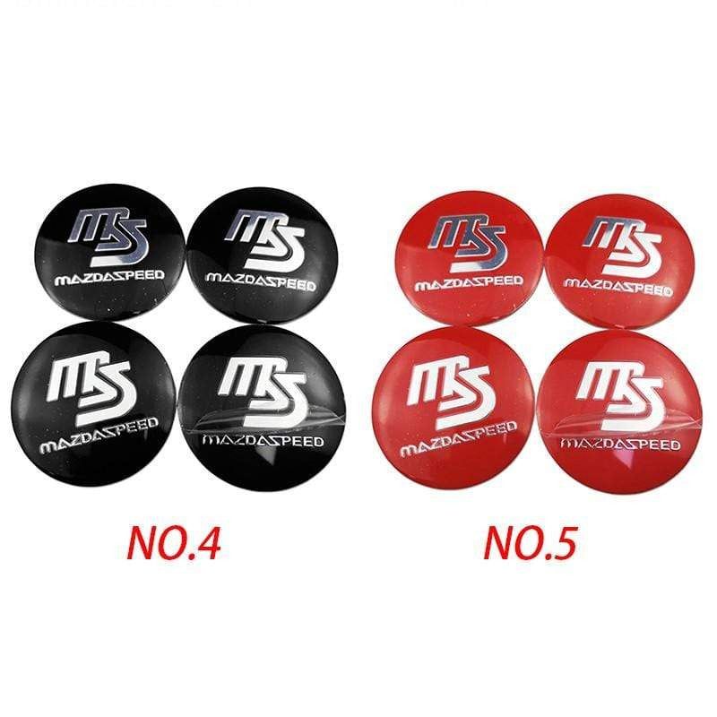 4PCS 56mm MS Mazda Speed Car Wheel Center Hub Cap Sticker Auto Tire Emblem Badge Decal