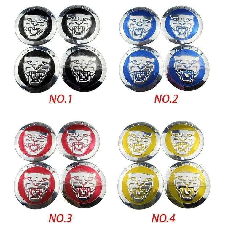 56mm 4PCS Jaguar Leopard Head XF XJ-S XJ-6 X-Type XE S-Type XKR XK Car Wheel Center Hub Cap Sticker Emblem Badge Decal