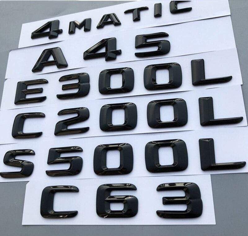 Letter Number Emblem for Mercedes Benz AMG 4MATIC A45 A260 C200L E300L S400L CLA200 Car Styling Trunk Logo Glossy Black 2014-16